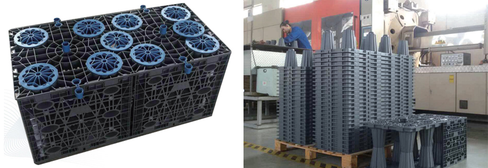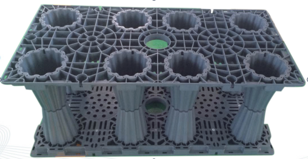 塑料模塊組合水池由多個 PP 模塊單體組合 ,在建筑工地現(xiàn)場拼合成整體,并通過包裹防滲材料,形成地下蓄水池。單體模塊采用 PP 材料注塑而成,根據(jù)收集的雨水量和用戶的需求,組合成不同形狀和不同體積,并可根據(jù)使用場合承載力不同,選擇不同結構形式、 不同承載強度的塑料模塊。 PP 組合模塊水池施工快捷、 布局靈活、 抗老化、 防藻類滋生、 抗震性能好、 不會滲漏、 可拆卸異地重建等優(yōu)點, 并可配合雨水滲排一體化系統(tǒng)、 路面滲水板產(chǎn)品使用,取代透水磚及硬化路面,能夠改善路面積水、 緩解城市內(nèi)澇。